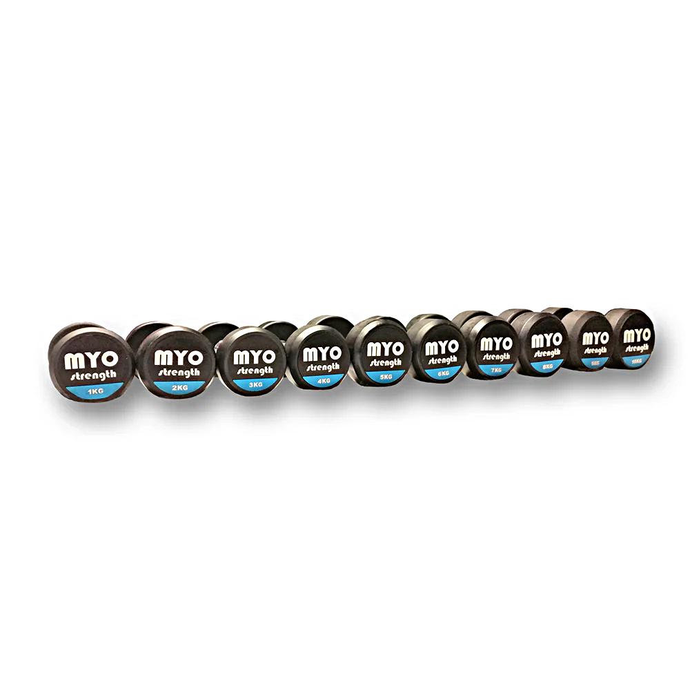 MYO Strength 1kg – 10kg Rubber Dumbbell Set with PU End Caps